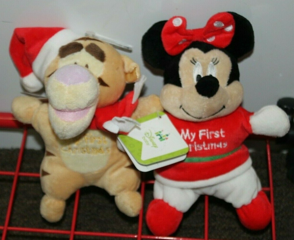 These super soft and cuddly Tigger and Minnie Mouse plushes are made for the Disney Baby line. Each toy measures 7″-8″ and is embroidered with “My First Christmas”.
